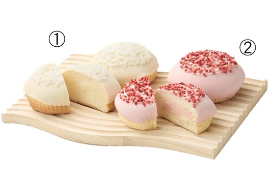 ミルククリームやいちごクリームを忍ばせた赤と白のメロンパン