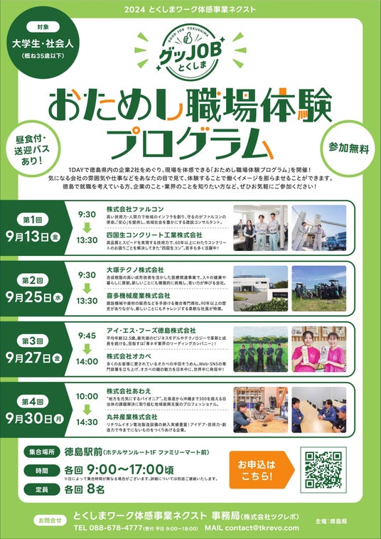 1DAYで徳島県内の企業2社をめぐり、現場を体感できます!