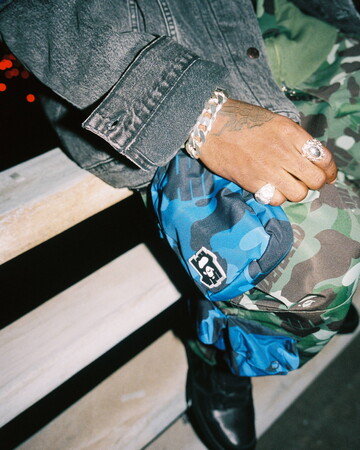 BAPE(R)︎のCOLOR CAMOには、UNDFTDのロゴとシグネチャーである5ストライクスがあしらわれ、今コレクションならではのスペシャルカモフラージュとして登場。飛行機のフライトチケットをモチーフにしたラベルも付属されるなど、ディテールにもこだわっています。