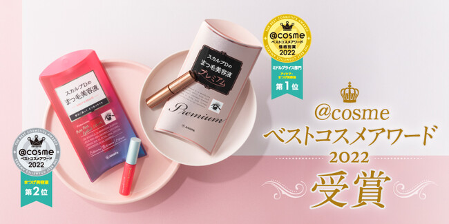 この度、アンファー株式会社(本社:東京都千代田区、代表取締役社長:叶屋宏一 以下「アンファー」)は、スカルプDまつ毛美容液シリーズが「@cosmeベストコスメアワード2022」の2部門を受賞したことをお知らせいたします。「価格別賞ミドルプライス部門アイケア・まつげ美容液」では、『スカルプD ボーテ ピュアフリーアイラッシュセラム プレミアム』が第1位、「ベストコスメアワード2022まつげ美容液」では、『スカルプD ボーテ ピュアフリーアイラッシュセラム』が第2位を獲得しました。