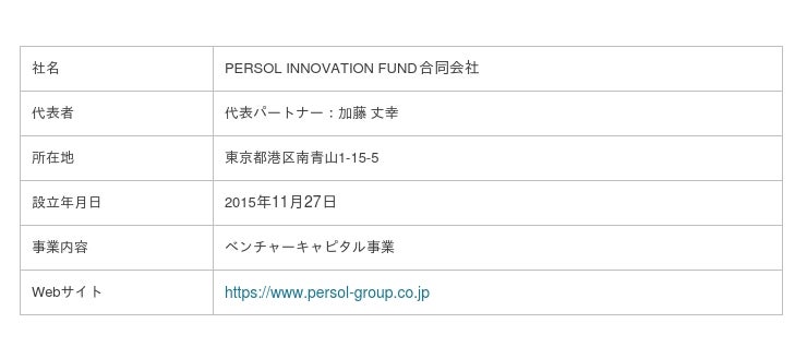 なお本出資は、PERSOL INNOVATION FUND合同会社(本社:東京都港区、代表パートナー:加藤 丈幸)を通じて実施いたしました。