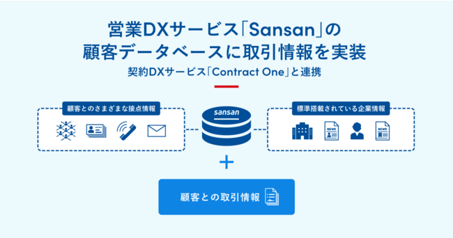働き方を変えるDXサービスを提供するSansan株式会社は、2023年5月より営業DXサービス「Sansan」が契約DXサービス「Contract One」と連携し、顧客データベースに取引情報を実装することを発表します。