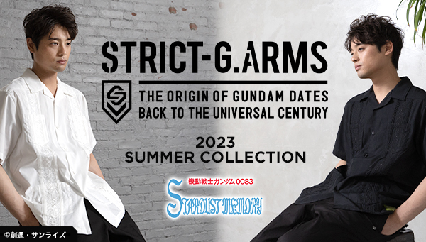 株式会社バンダイ ファッションブランド事業部では、ガンダムの世界観を取り入れたアパレルショップ「STRICT-G」にて、2023年7月1日(土)より“STRICT-G.ARMS(ストリクトジーアームズ)“23SUMMERコレクションとなる『機動戦士ガンダム0083STARDUST MEMORY』のアイテムを販売致します。 “STRICT-G.ARMS(ストリクトジーアームズ)“は『機動戦士ガンダム』の舞台「宇宙世紀」を実在した史実としてイマジネーションし、リアルアーミーな空気感を持ちつつデイリーユースなコーディネートを提案するコレクションラインです。半袖シャツ、Tシャツなど8アイテムをSTRICT-G各店舗にて販売いたします。※Tシャツは7月15日(土)より発売となります。また、店頭販売に先駆け、バンダイナムコグループ公式通販サイト「プレミアムバンダイ」( https://p-bandai.jp/ )では、2023年6月30日(金)13時より予約販売を開始いたします。