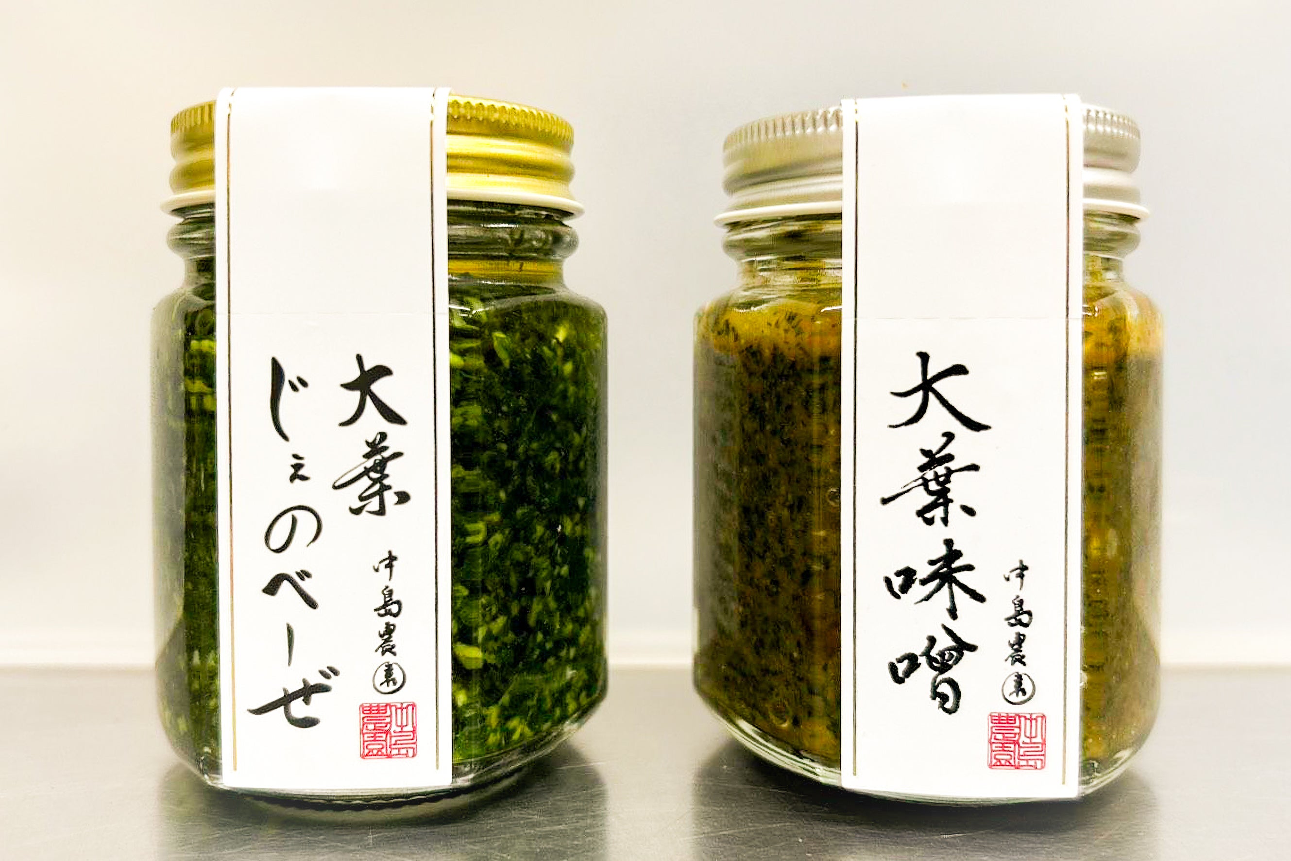 中島農園では、「大葉じぇのべーぜ」「大葉味噌」などの加工品開発にも取り組んでいます。