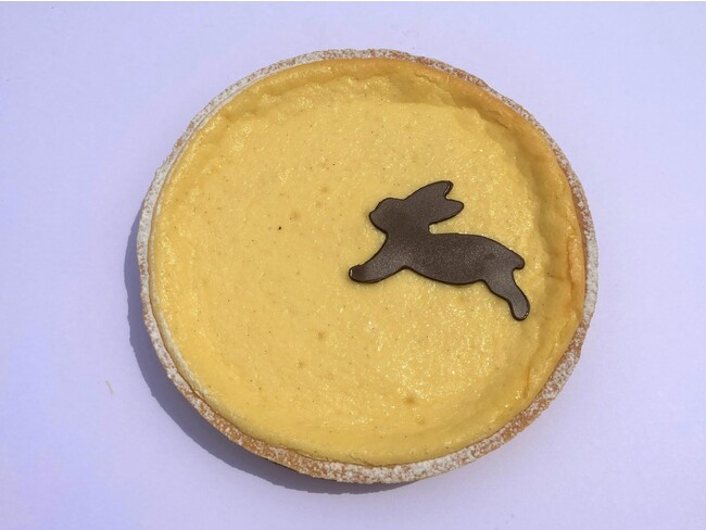 満月の形をしたチーズタルトの上にうさぎのチョコを載せました。※販売期間:9/11~9/29