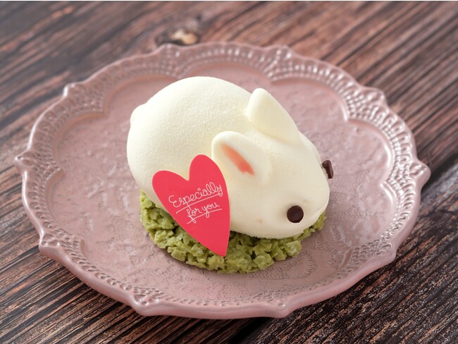 マスカルポーネのムース、いちごのムース、フランボワーズのジャムなどを組み合わせた、うさぎのケーキです。