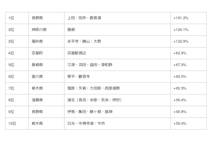 2016年 夏の国内家族旅行 人気上昇エリアランキング トップ10