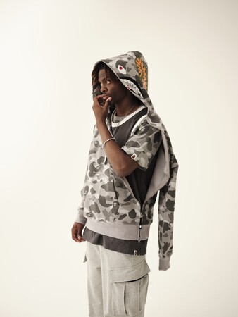 今シーズンのメンズコレクションでは、「CONTEMPORARY STREET」「URBAN OUTDDOOR LIFE」「SPACE UNIFORM」「COLLEGE」「JAPANESE CULTURE」「SPORTS」といった6つのシーズンテーマを掲げ、「BAPE(R)︎」の代名詞でもある「CAMO」をベースにしたグラフィックや90年代から00年初期のムードをディテールに落とし込んだ珠玉のコレクションを展開します。