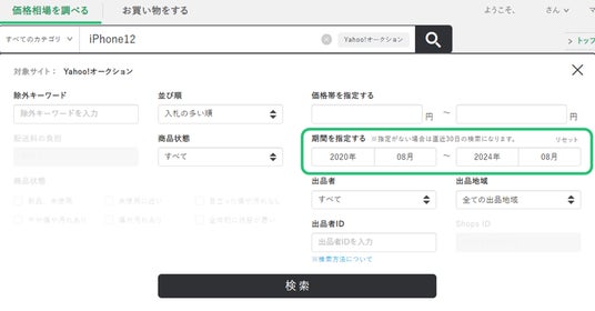 なお2024年7月1日以降にオークファンプレミアム会員に新規登録もしくは再開された方は、その後継続いただいた年月に応じて、最大1,500回まで「期間おまとめ検索」をご利用いただけます。