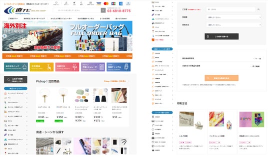 敷島産業が運営するノベルティ販売サイト「直ナビ」 (左:TOPページ 右:予算シミュレーター)