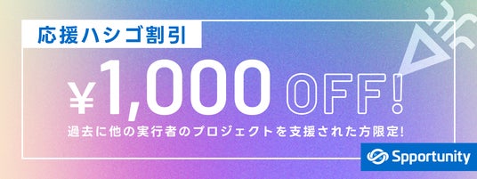 過去に同じ実行者のプロジェクトを支援したことがある場合に使える割引クーポン。過去にスポチュニティで同一実行者のクラファンプロジェクトへ支援したことのある支援者を割り引くことで、リピート支援を確実に獲得することができます。