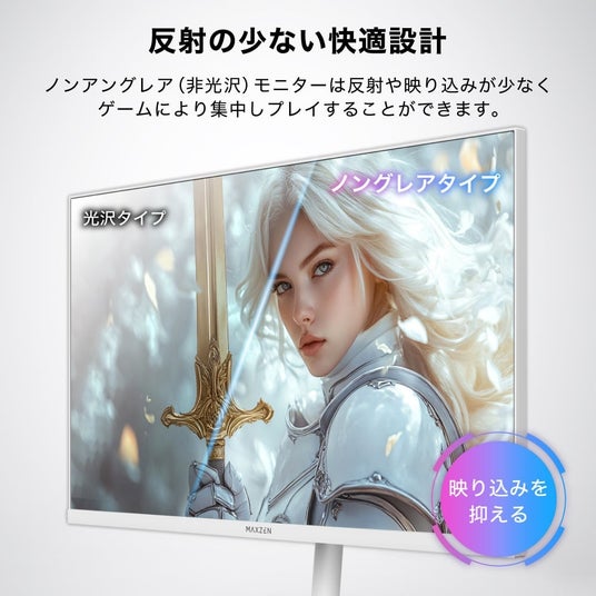 ホワイトで統一された、美しくおしゃれで長時間のプレイにも配慮したゲーミングモニターをお届けします。