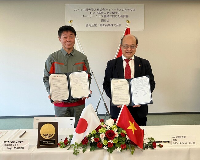 株式会社イトーキ(本社:東京都中央区、社長:湊 宏司)は、2023年12月4日にハノイ工科大学との友好交流および高度人財に関するパートナーシップ締結に向けた確認書調印式を当社の関西工場(滋賀県近江八幡市)にて執り行いましたことをお知らせします。