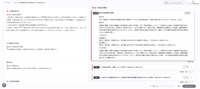 ~一般的な審査基準で設定された自動レビューに加え、自社の審査基準に沿った指摘も同時に表示。契約審査の効率化と審査基準の標準化を支援~