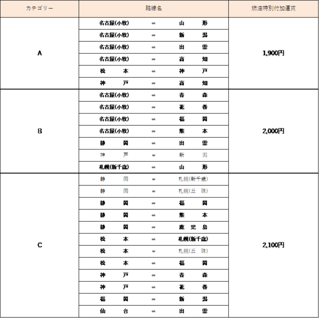 3.各種割引運賃利用の場合にも、この燃油特別付加運賃を適用いたします。