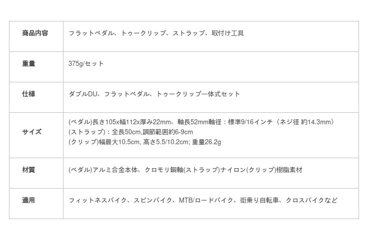 ペダルとトゥークリップ、ストラップ付のバラでも使える一式セットです。