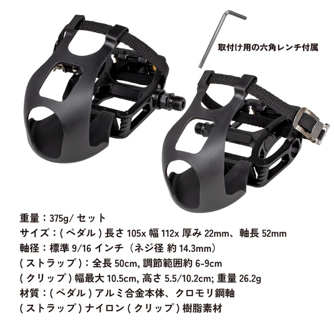 バラでも使える一式セットはペダルとトゥークリップ、ストラップ付き。