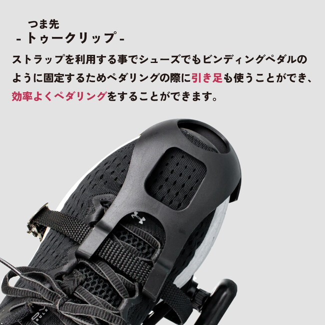 簡単にシューズを着脱する事ができてどんな靴でも使えるトゥークリップは