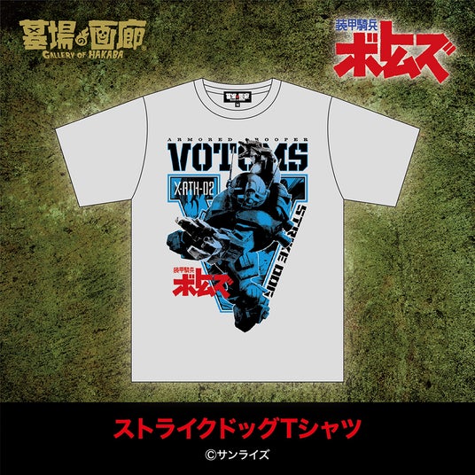 主人公キリコへの愛憎渦巻くパーフェクトソルジャー、イプシロン専用機『ストライクドッグ』の勇姿をTシャツ化!ヘビィ級でありながら桁外れの機動性と特徴的な左手のアイアンクローが余す所なく表現された、躍動するブルーATの姿!しかし着用すると通常の稼働時間より短くなるという噂も?