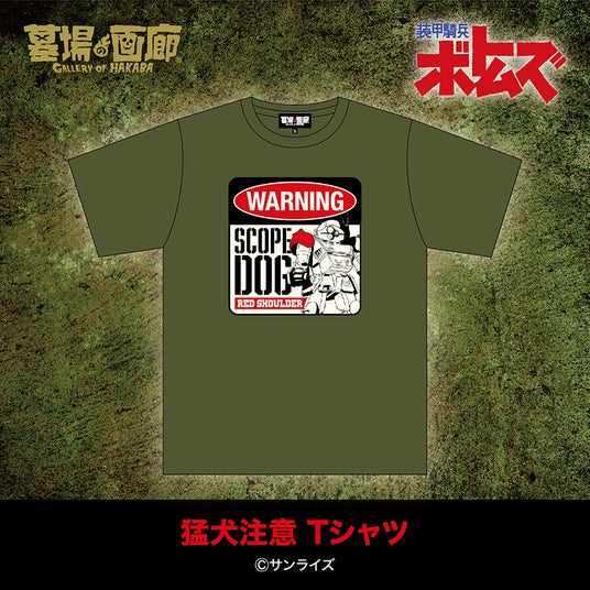 ならず者たちが徒党を組み、あらゆる悪徳が武装するウドの街に安全地帯はない!『装甲騎兵ボトムズ』のハードな世界観を表す、戦禍のアラート看板風デザインをTシャツ化!前面にプリントされたレッドショルダーカスタムのスコープドッグに狙われれば最期、命の保証は全くない!ミリタリースタイルなカーキのボディが渋い1枚!