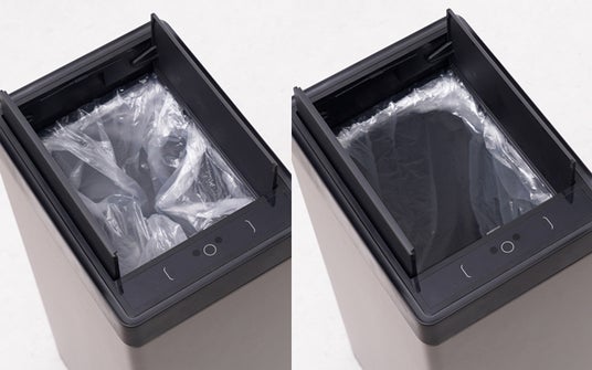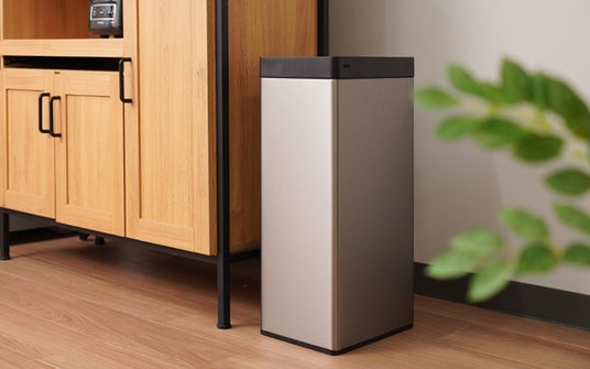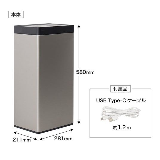ファンの風でゴミ袋を自動で広げる、充電式の30L自動開閉ゴミ箱