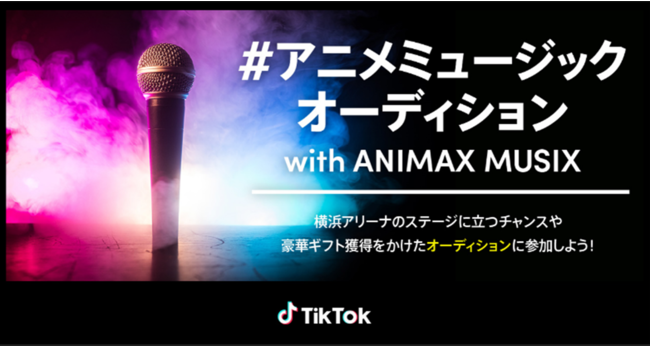 TikTok LIVEでアニメミュージックのパフォーマンスを披露してくれた方の中から1名が横浜アリーナのステージに立つチャンスや豪華ギフト獲得をかけた「アニメミュージックオーディション with ANIMAX MUSIX」(#アニメミュージックオーディション)を開催します。