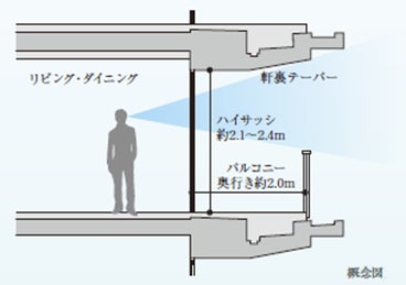 高さ約2 .1~2 .4m※のハイサッシを採用、さらにバルコニー
