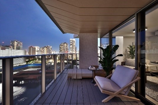 本物件では、特徴であるキャナルビューを日々の生活の中で最大限愉しんでいただくため、専有部・バルコニー空間に下記3点の工夫を施しています。