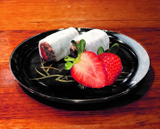 地元の小豆を使った自家製あんこと、甘味たっぷりで”練乳いらず”と評判の「あまりん」いちごを贅沢に使ったいちご大福をご用意しました。別メニューの鰻と一緒に、相性抜群の季節のいちごをご賞味ください。