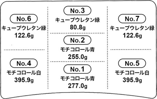 低反発の柔らかいウレタン素材をカットした「キューブウレタン緑」を、枕の上部3.6.7.に使用することで、枕に柔らかさをプラス。