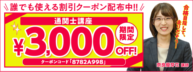 高い合格率を実現する株式会社フォーサイト(東京都文京区/代表取締役社長:山田 浩司)は、2023年11月7日(火)より通関士講座の誰でも使える割引クーポンを配布中です。