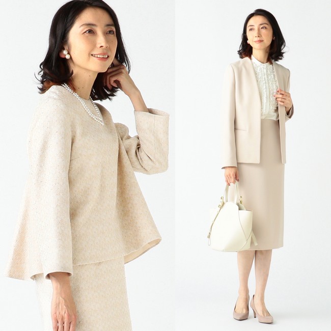 ママ向けのアイテムは、ツイードセットアップのような王道のセレモニーウェアから、ビジネスシーンやデイリーにも使える汎用性の高いマルチウェアまで、時代に寄り添ったアイテムが揃います。