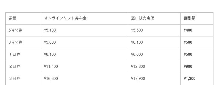 オンラインショップの利用で、窓口よりお得にリフト券購入を