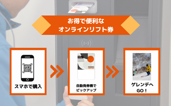 ニセコ東急 グラン・ヒラフでは、スキー場の窓口に並ぶことなく、自動発券機でリフト券を受け取りいただけるオンラインリフト券を、11月1日(火)よりオンラインショップ(https://www.grand-hirafu.jp/winter/gelande/online_shop.html)にて販売開始いたします。オンラインリフト券はお客様のスマートフォン等で事前にオンラインショップで決済・購入いただき、利用日にスキー場の自動発券機でリフト券(キーカード)を発券するシステムです。