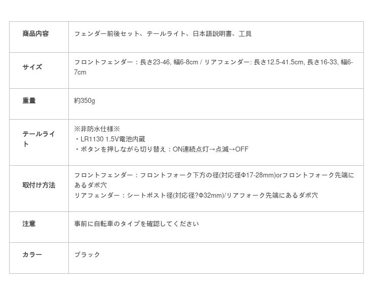 制服やスーツでの自転車通勤や自転車通学には是非装着したい泥除けです。