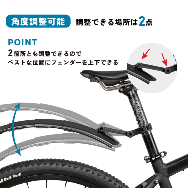 リアフェンダーは角度調整が可能で上下に調整できます。