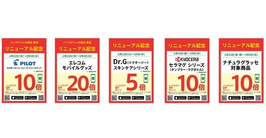 ハンズは「手でソウゾウしよう。手でワクワクしよう。」を新たなブランドメッセージとして、お客様にお 買い物を楽しんでいただくキャンペーン・イベントを常に開催しています。 新たなロゴ看板のアトレ川崎店でも、各フロア・コーナーでは春にぴったりのモノやコトの出会いをご用意しています。またロゴリニューアルに伴いお得なキャンペーンも実施いたします。●お得なハンズクラブポイントアップ