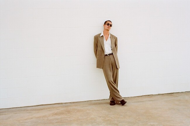 メンズウェアとユニセックスコレクションは、スタイリッシュなレザーコート、厚手のシアリングフライトジャケット、ソフトなテーラードスーツ、特徴のあるテクスチャのウール生地のオーバーコートで構成されています。シャツは、鮮やかなストライプから温かみのあるチェック柄、特注のアートワークプリントまで幅広いバリエーションで展開されます。カジュアルなコーデュロイ、デニムジーンズ、重量感のあるジャージは、シルクのネクタイ、レザーグローブ、ウールのベレー帽などのスタイリングに欠かせないアクセサリーによって一層引き立ちます。