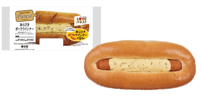 あらびき肉の旨みを楽しめるポークウインナーを使ったパネストの人気商品。パン生地に生クリームを使用してしっとり感がアップしました。