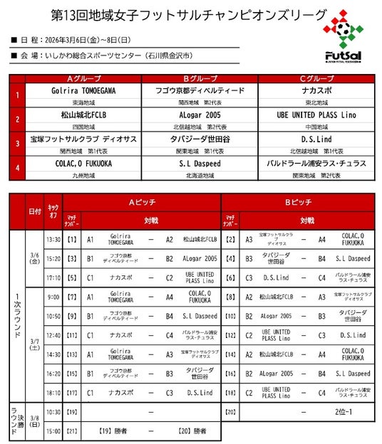 名称: 第13回地域女子フットサルチャンピオンズリーグ