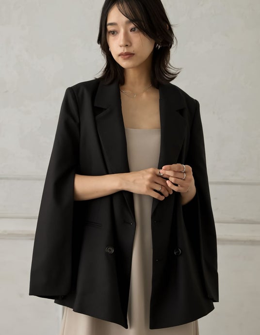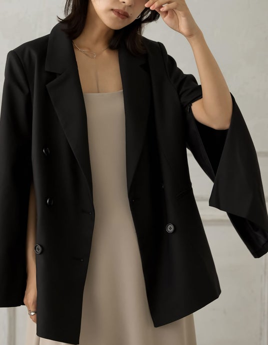 トレンドのスリットスリーブが魅力の2WAYダブルテーラードジャケット。