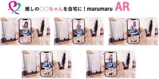 【marumaruAR】は、スマホのカメラ越しで見る現実世界に店舗キャストの3Dホログラムや仮想世界(ARオブジェクト)を重ね合わせることができ、その場に推しのキャストが実在するようなシーンを演出します。