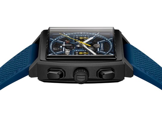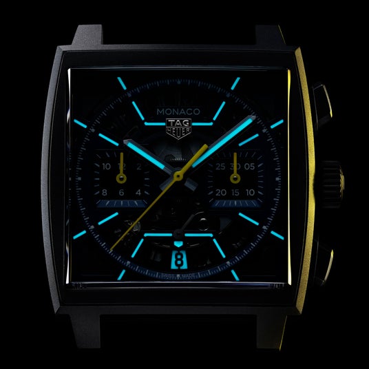 タグ・ホイヤー モナコ クロノグラフは、プレシジョンエンジニアリングとアヴァンギャルドなデザインへのブランドのコミットメントを体現しています。スケルトンダイヤル越しに、洗練された内部の機構を目にすることができます。自動巻のTH20-00を搭載し、約80時間の驚異的なパワーリザーブにより高精度の計測を実現しています。