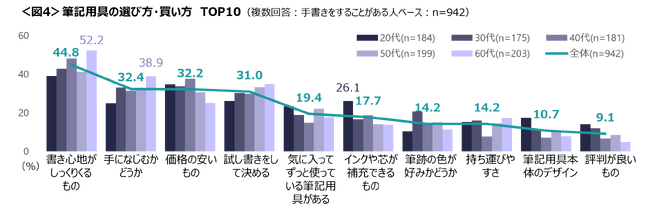 筆記用具を選ぶとき・買う時に重視する点は「書き心地」。<図4>