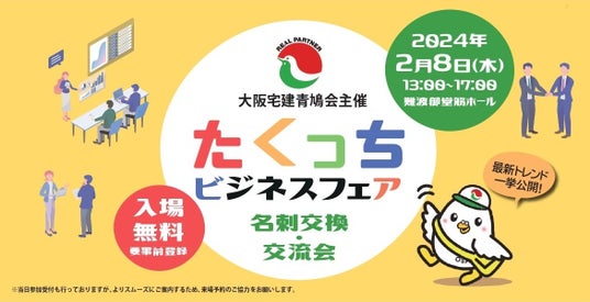 2024年2月8日(木)に開催される一般社団法人大阪府宅地建物取引業協会(所在地:大阪市中央区、会長:高村永振、以下「大阪宅建」)の青鳩会(せいきゅうかい)が主催する「たくっちビジネスフェア」に、株式会社いえらぶGROUP(本社:東京都新宿区、代表者:岩名泰介、以下「いえらぶGROUP」)およびグループ会社である株式会社いえらぶパーク(本社:東京都新宿区、代表取締役:川口真弘、以下「いえらぶパーク」)が出展することをお知らせします。