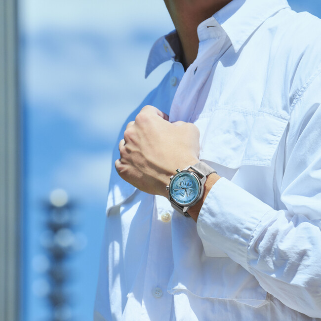 「TOKYO SORA」シリーズは、「東京を彩る空」をテーマに、絶え間なく変化する空の表情を質感の高いダイヤルで表現し、オンオフを問わないファッションスタイルを提案しています。