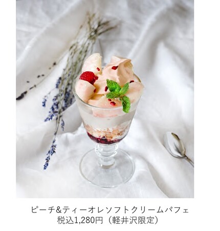軽井沢のロクシタンカフェでは、桃をふんだんに使用した限定パフェが登場。
