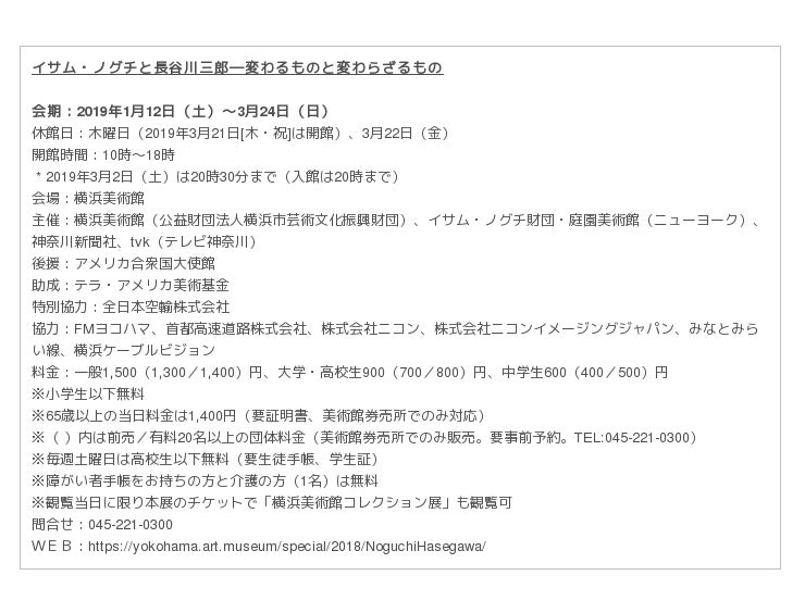 2019年1月12日(土)に横浜美術館で「イサム・ノグチと長谷川三郎―変わるものと変わらざるもの」展が開幕します。