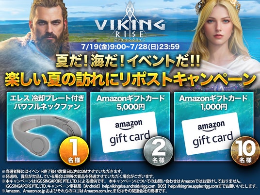スマートフォン向けゲームアプリのグローバルメーカーIGG(会長兼CEO: Zongjian Cai 香港証券取引所上場 日本所在地:東京都新宿区)は、ヴァイキング戦略RPG『ヴァイキングライズ』の公式Xにて、『夏だ!海だ!イベントだ!!楽しい夏の訪れにリポストキャンペーン』を開催いたします。