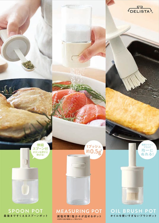 株式会社コジット(本社:大阪府大阪市、代表取締役:久保慎一郎)は、普段の料理を快適にする3アイテム「伸縮スプーンポット」「塩少々計量ポット」「オイルブラシポット」を5月1日(木)より全国発売します。